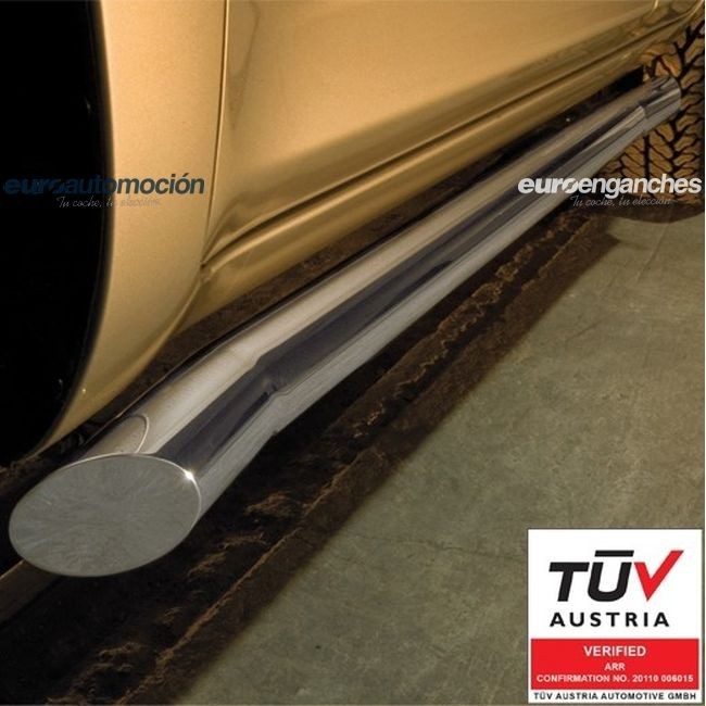 Estriberas negras de acero inoxidable de 70mm de diámetro. El tipo de acero inoxidable utilizado es el AISI 304 que tiene una muy alta resistencia a la corrosión. Su espesor es de 2mm y ha sido lacada con pintura plástica en negro muy resistente a las condiciones metereológicas. Soportan pesos hasta 115 kg. Según normativa vigente, para la legalización de este producto en la ITV tras su instalación por un taller autorizado por el Ministerio de Industria, es obligatorio la presentación de un proyecto técnico que podemos tramitarle por un coste adicional. La garantia suministradas en los artículos pintados en negro es de 12 meses. La foto mostrada es en acero pulido por no poseer de ella en negro, pero se sumistra en negro. Si tiene alguna consulta sobre el producto o de su legalización en la ITV, no dude en ponerse en contacto con nosotros. NOTA: Como nuestro objetivo es la plena satisfacción del cliente y al ser éste un producto PREMIUM, siempre suministramos artículos nuevos, en perfecto estado y fabricados bajo pedido, por lo que el tiempo de entrega oscila entre las 3 y 5 semanas.