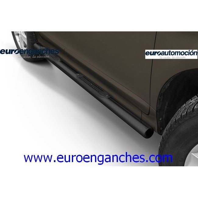 Estriberas negras con escalones de plástico superpuestos de acero inoxidable de 70mm de diámetro. El tipo de acero inoxidable utilizado es el AISI 304 que tiene una muy alta resistencia a la corrosión. Su espesor es de 2mm y ha sido lacada con pintura plástica en negro muy resistente a las condiciones metereológicas. Soportan pesos hasta 115 kg. Según normativa vigente, para la legalización de este producto en la ITV tras su instalación por un taller autorizado por el Ministerio de Industria, es obligatorio la presentación de un proyecto técnico que podemos tramitarle por un coste adicional. La garantia suministradas en los artículos pintados en negro es de 12 meses. Si tiene alguna consulta sobre el producto o de su legalización en la ITV, no dude en ponerse en contacto con nosotros. NOTA: Como nuestro objetivo es la plena satisfacción del cliente y al ser éste un producto PREMIUM, siempre suministramos artículos nuevos, en perfecto estado y fabricados bajo pedido, por lo que el tiempo de entrega oscila entre las 3 y 5 semanas.