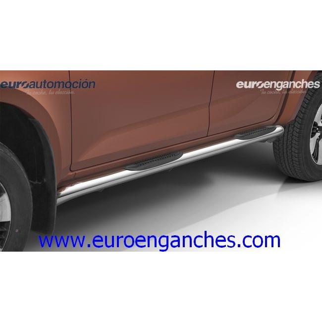 Estriberas con escalones de plástico superpuestos de acero inoxidable pulido a mano de alta calidad de 70mm de diámetro. El tipo de acero inoxidable utilizado es el AISI 304 que tiene una muy alta resistencia a la corrosión. El espesor es de 2mm y ha sido pulido a manos. Soportan pesos hasta 115 kg. Según normativa vigente, para la legalización de este producto en la ITV tras su instalación por un taller autorizado por el Ministerio de Industria, es obligatorio la presentación de un proyecto técnico que podemos tramitarle por un coste adicional. La garantia es de 24 meses. Si tiene alguna consulta sobre el producto o de su legalización en la ITV, no dude en ponerse en contacto con nosotros. NOTA: Como nuestro objetivo es la plena satisfacción del cliente y al ser éste un producto PREMIUM, siempre suministramos artículos nuevos, en perfecto estado y fabricados bajo pedido, por lo que el tiempo de entrega oscila entre las 3 y 5 semanas.