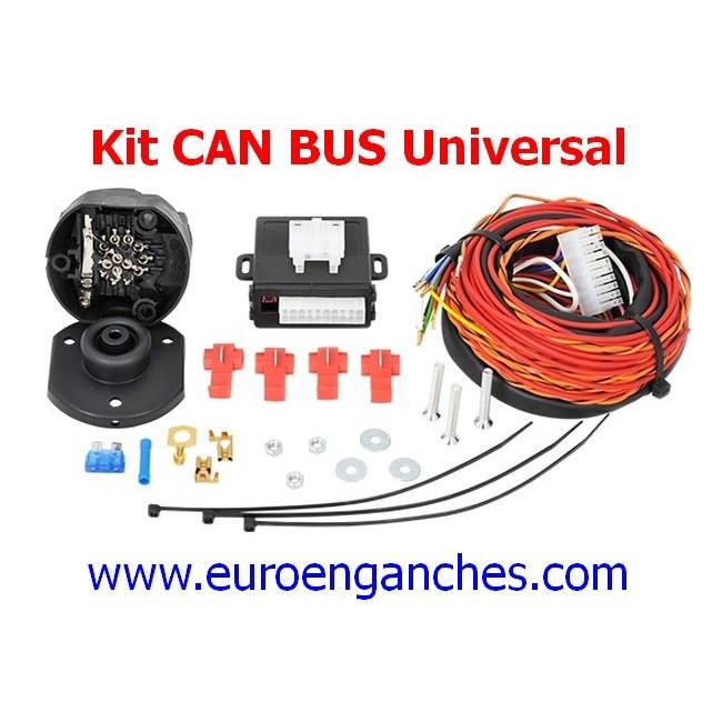 Kit eléctrico de 13 polos universal para los vehículos que envían las señales de las luces a los pilotos por datos via CAN, con base de enchufe de PVC que permite la conexión de las luces del vehículo al remolque, portabicis o portamotos.